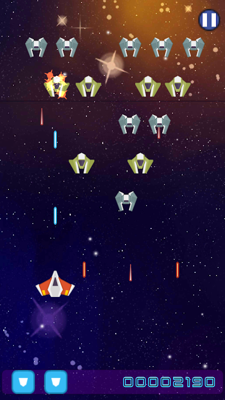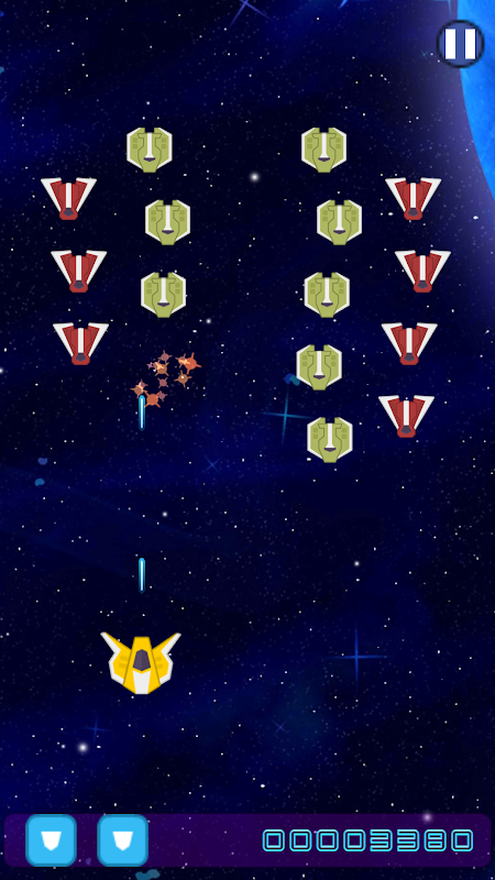 To defend your galaxy you have to move your spaceship with your finger and hit the enemy aliens with your projectiles. Some of the enemy aliens have more life than others and some can hit you with more damage than others. You start with 3 shields, if they are all hit you will be destroyed.