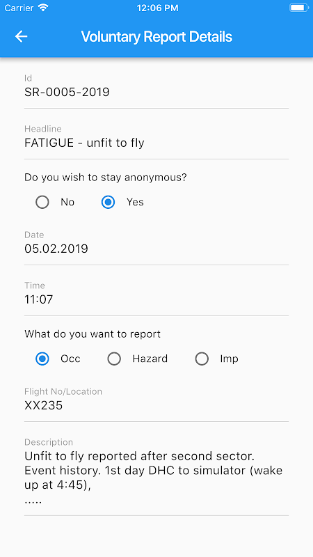 Galiot Aero is dedicated app for offline and online aviation mandatory and voluntary safety occurrence reporting for Galiot SMS - Aviation Safety Management System.