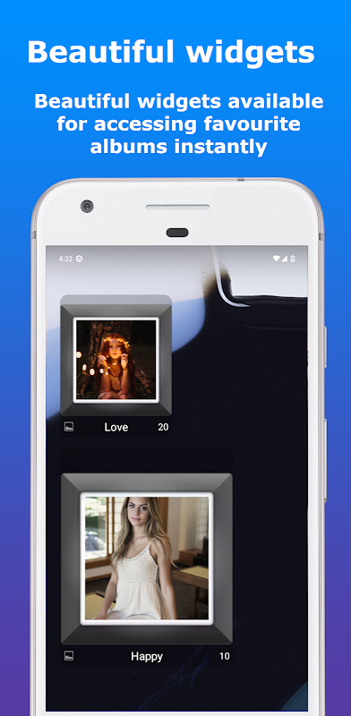 Are you looking for best Album widget App. Try Gallery Pro which supports Beautiful & Elegant Photo Album Widgets.