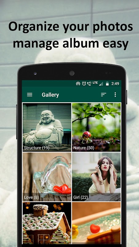 We are providing phone image and video into single place. Items can be sorted by date, size, name both ascending and descending, photos can be zoomed in. Media files are shown in multiple columns depending on the size of the display you can change the column count by pinch gestures. They can be renamed, shared and deleted. Images can also be cropped, rotated, flipped or set as Wallpaper directly from the app. The Gallery is also offered for third party usage for previewing images / videos, adding attachments at email clients etc. It's perfect for everyday usage.