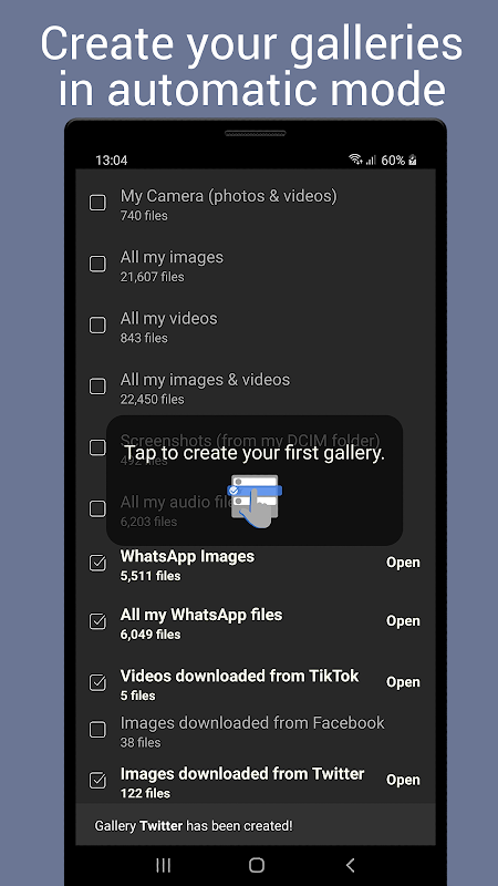 • Create as many galleries as you need. If compatible, create shortcuts to access any of them with a single tap