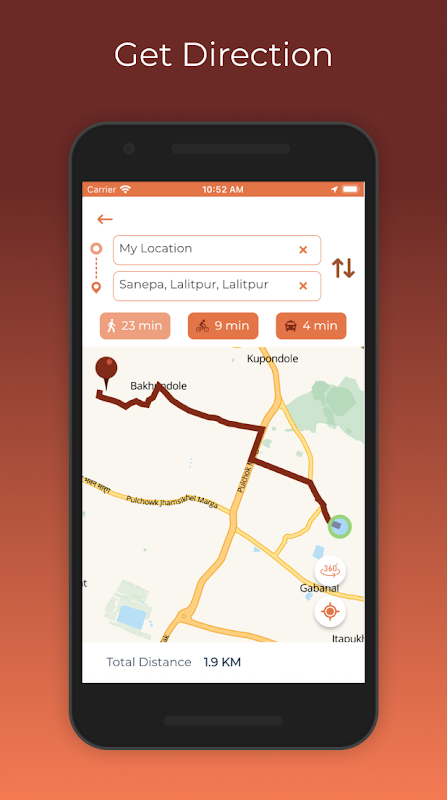 A map application for the Nepalese audience. It aims to enhance the use of map with features such as real time geo location, house number search and 360 street views.