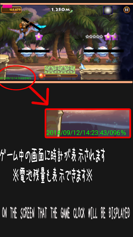 Some of the game application to start in full screen, some battery power and clock does not appear, but if you use this app, you can to reside display the remaining battery capacity and the digital clock on the screen at all times.