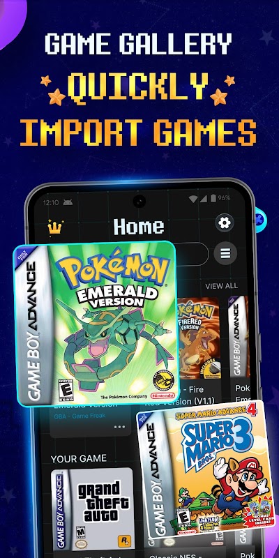 Game Emulator - GBA Retro is the ultimate Game Boy Advance emulator for Android, delivering a premium gaming experience across devices, from older phones to the latest tablets. GBA Emulator will give you a nostalgic feeling to remember famous emulators like: Gamma Emulator, Delta Emulator, SNES Emulator, NES Emulator for Android. This app replicates real GBA/GBC hardware for seamless play, including multiplayer support over Bluetooth and Wi-Fi. With its intuitive interface, high compatibility, and excellent performance, Gamma Emulator will provide you with endless hours of entertainment.
