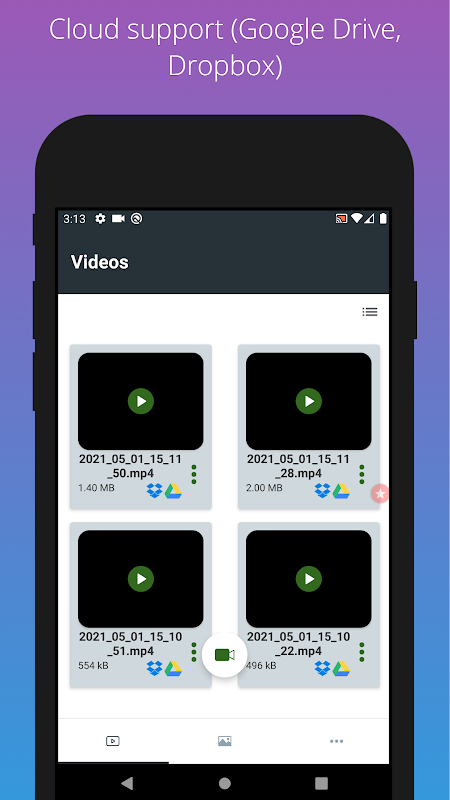 + Cloud support (Recorded videos are automatically uploaded in Google Drive, Dropbox)