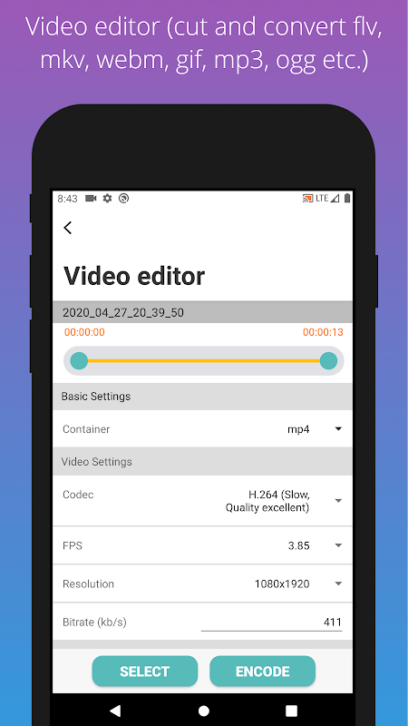 + Video editor (Can cut video and convert to flv, mkv, webm, gif, mp3, ogg and opus formats simultaneously)