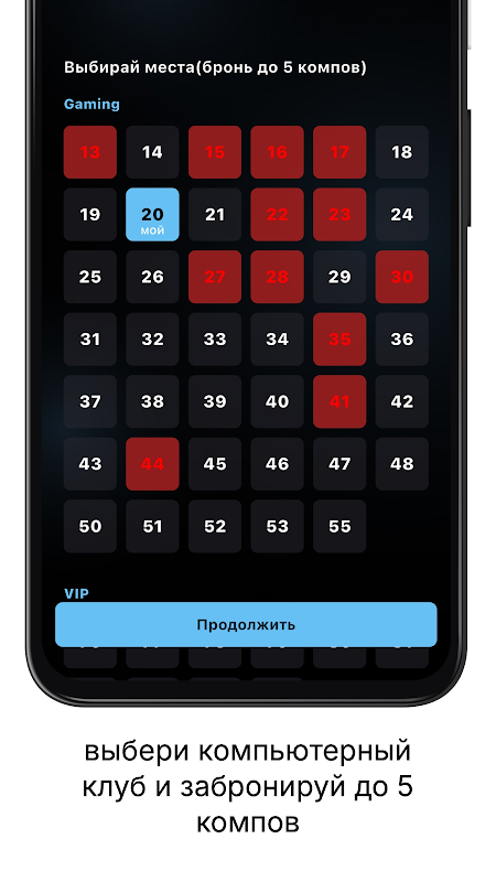 The Lobby mobile app allows players to select a computer and book in one click. It is enough to enter your login in the computer club where the player is registered, select a computer and go through the payment stage. (the card is automatically saved after payment)