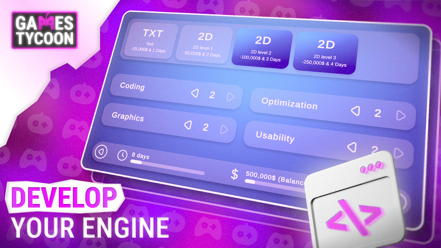 In Games Tycoon, every decision—from refining your game engine to launching innovative consoles—propels you closer to industry domination. Transform your small startup into a global powerhouse and leave your mark on the gaming world. Whether you dream of creating the next award-winning blockbuster or building an empire that shapes the future of technology, Games Tycoon offers an immersive, feature-rich experience that combines the best elements of game dev tycoon and consoles tycoon simulators.