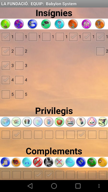 Fins a 10 Insígnies diferents amb un màxim de 10 reiteracions cada una.