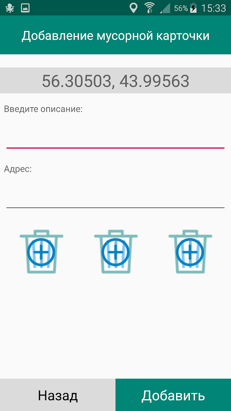 Приложение Garbage создано за 24 часа для участия в стартапе г.Саров