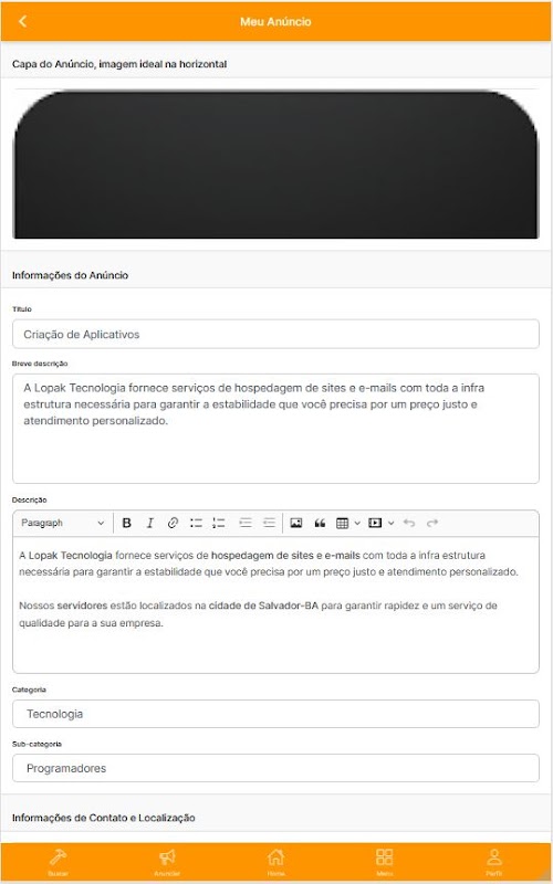 We are a company under the website and application formats, which consist of an ad network focused on the dissemination of establishments, companies, self-employed professionals and services in general. In addition, on our platform, people who are looking for job openings or even expanding their clientele have the opportunity to achieve even more visibility in the job market, counting on the constant exposure of their CVs that can be viewed by anyone who visits our digital platforms.
