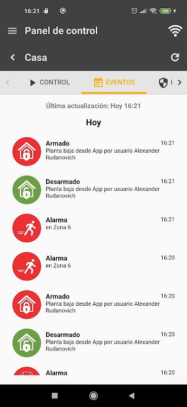 Control: arms and disarms the alarm panel in stay and away mode.