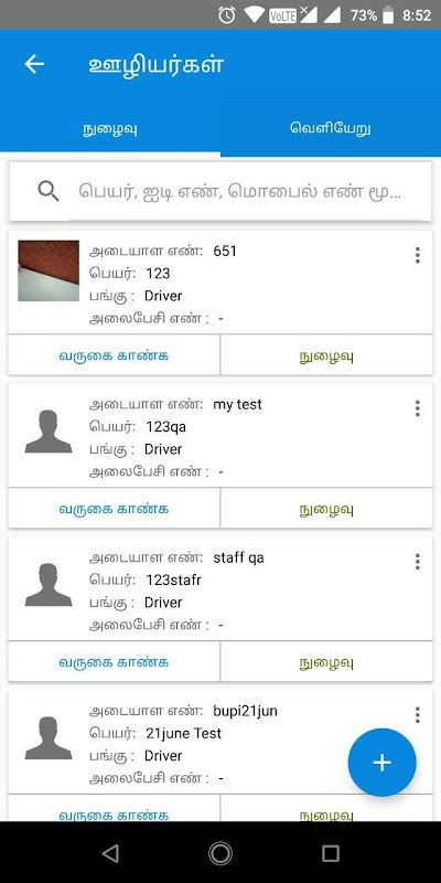 * Security can look up and mark In / Out against each Staff as and when an in/out happens