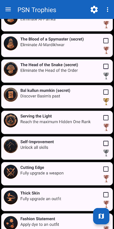 * PSN/Playstation trophies: view trophies and mark them as completed to keep track of your progress