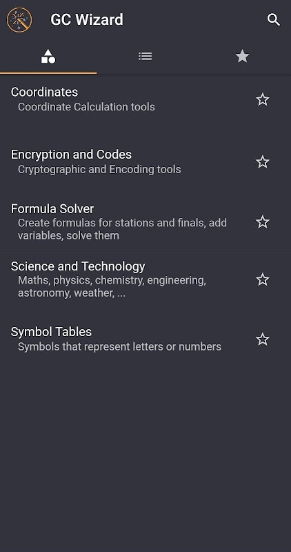 It was originally created to offer Geocachers as an offline tool to support them with in-field mysteries and riddles. So, the GC Wizard contains numerous tools for simple cryptography, geographic and scientific calculations as well as hundreds of sets of various symbols.