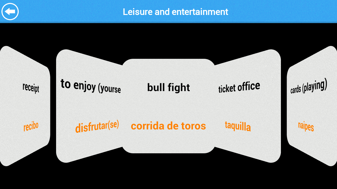 This innovative app has beautiful flash cards with coverflow view which can be viewed either by Spanish to English or English to Spanish.