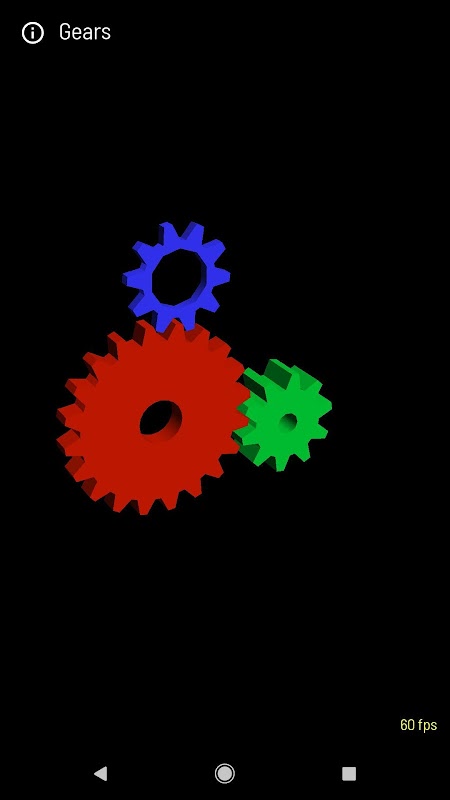 Gears for Android is a heavily modified port of the famous "gears" demo to Android.