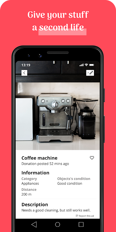 Want to empty your shelves? Moving? Want to give something you no longer use a second life? Post an ad on Geev in a few clicks and get rid of your stuff! You can also share the location of abandoned objects you find on the street.
