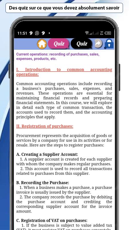 Multilingual: Learn general accounting in your native language. Our application offers lessons and quizzes in different languages, to facilitate your learning and ensure optimal understanding.