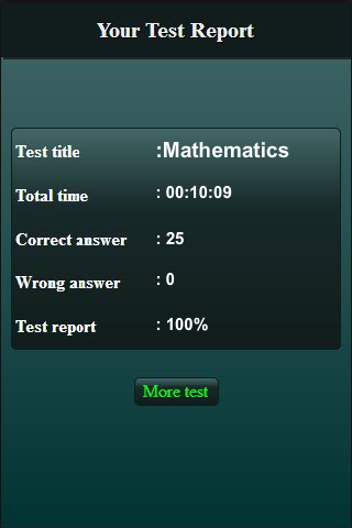 The application is very easy to use and has been designed very carefully keeping in mind the needs of the students. When a student/user makes a mistake the application indicates and also shows the correct answer. Take the General Mathematics tests repeatedly and analyze your improved results each time.