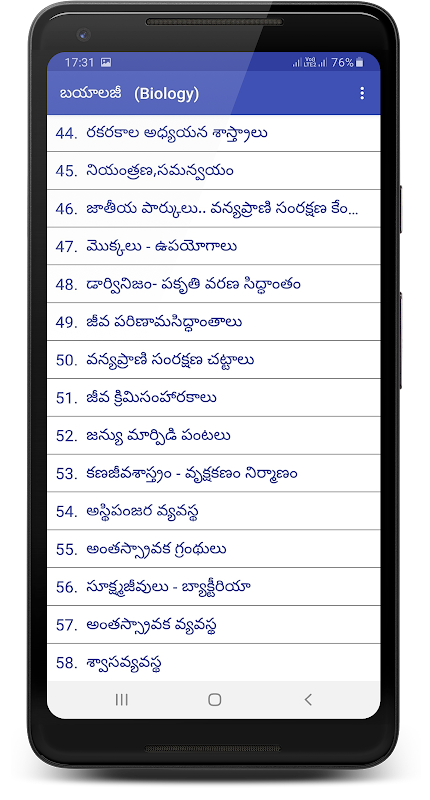 Science app contains Biology, Physics and Chemistry related Topics, Quiz and Bits.