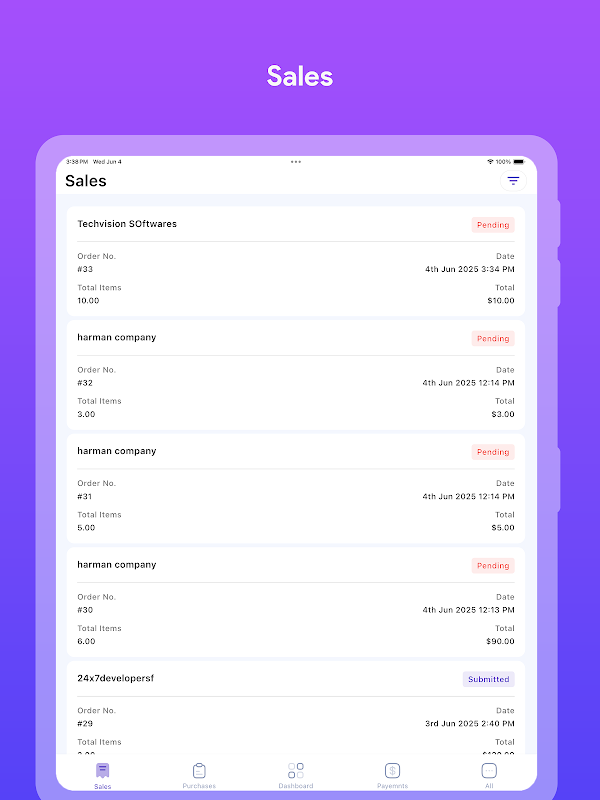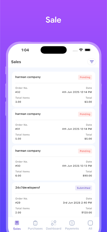 Place Purchase Orders: Directly place purchase orders to suppliers with just a few taps.