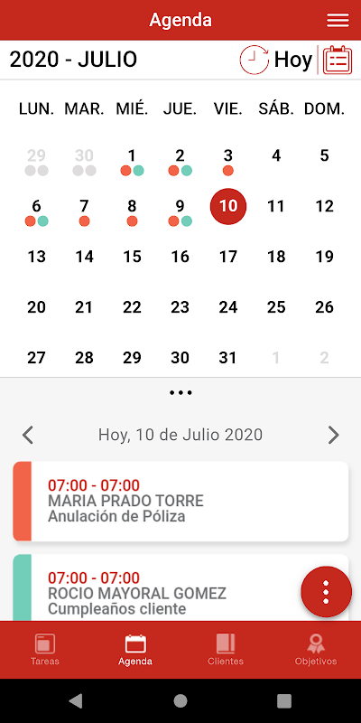 The App has access to tasks, calendar, client file, pre-contractual manager, as well as information on objectives and many more functionalities.