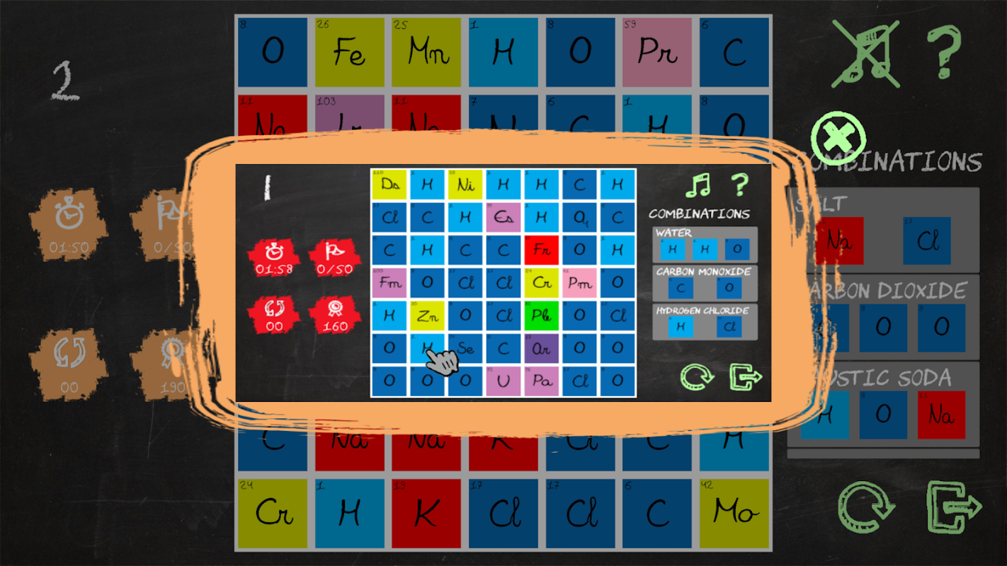 Aprende en cuatro áreas de la ciencia; física, química, biología y matemáticas. Combina con movimientos verticales y horizontales los elementos de los distintos campos; crea fórmulas químicas, asocia materiales por estado, clasifica animales por taxonomía, aplica las matemáticas.