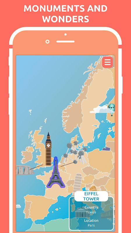 Learn geography the fun way! Countries, flags, mountains, rivers,...