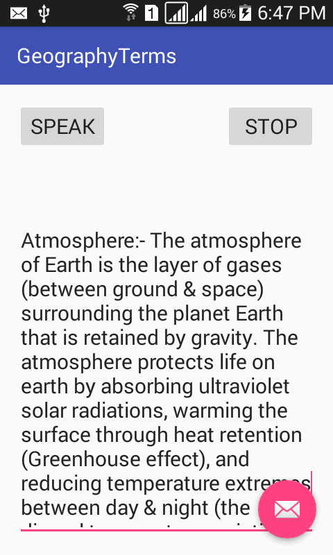 This Software is a tool to make Geography understood in a lucid style. It deals with almost all avenues of Geographical Concepts. It offers reliable ample data on Continents, Countries, Cities, Rivers, Oceans, Deserts, Mountains, Climate, Earth, Crop, Oil, Minerals, Beverages etc. It offers Listening and reading to maximize the learning in easiest way. Software is meant for all from 8th to PhD. This App consists of most of the essentials of Geography which are basics and necessarily needed to a geographer.