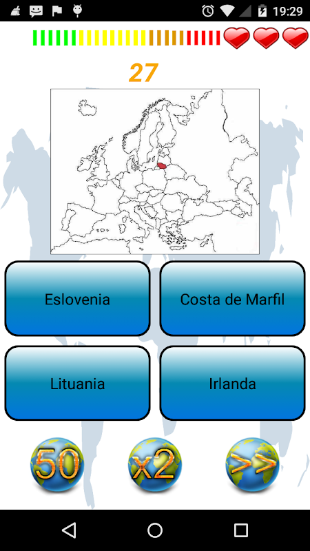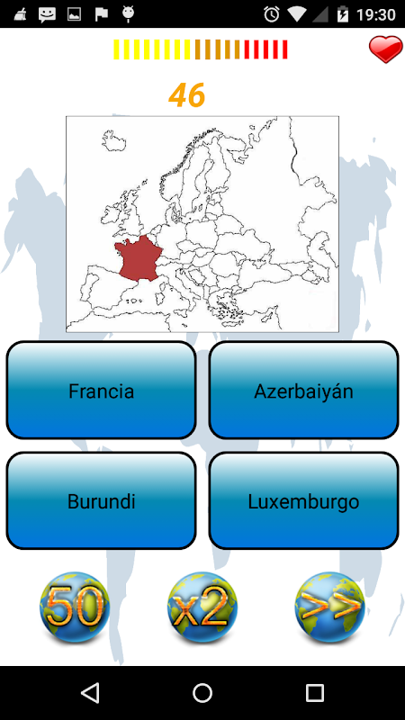 Geography game for children and adults, test your knowledge with this quiz. Compete to be the most knowledgeable of Geography, answer the questions correctly to score points, the faster you answer the more points you make it. In each game you will have three wildcards, the 50%, folding points, and passing the question.
