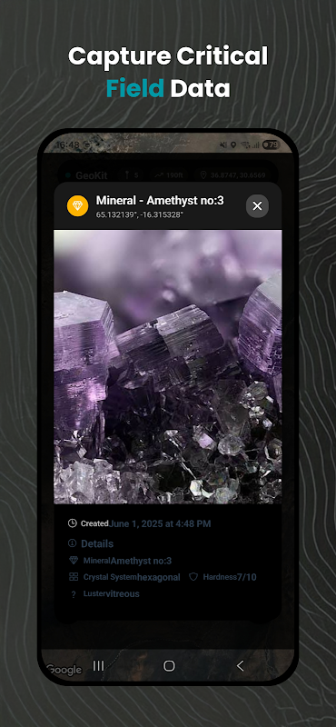 GeoKit revolutionizes geological fieldwork, offering a complete toolkit for geologists, volcanologists, and mining professionals. Record precise geological features, measure terrain, visualize critical data layers, and export results seamlessly—all offline in remote environments.