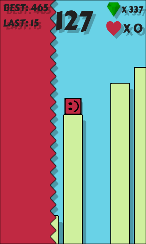 Try to do as many jumps as you can, don't be touched by the big boss wall with spikes coming from the left, continuously, and don't fall by missing tiles.
