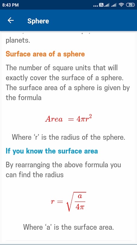 This application for Geometry gives us clear idea about the concepts of Euclidean Geometry. Deals all about geometrical figures, expressions and other significant parameters. This application help the students of all Standards to learn all about Triangle, Rectangle, Square, Cube , Circle, Sphere, Hemisphere and Cone. Another important advantage about this application is, this clearly deals formulas to find the various geometrical parameters like Perimeter,Area, Volume and other important measurements of all geometrical figures.This explains Pythagorean theorem for Right angled triangle. we hope this application for geometry is a very excellent pocket reference for all geometrical learners.