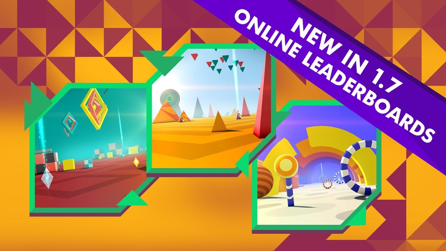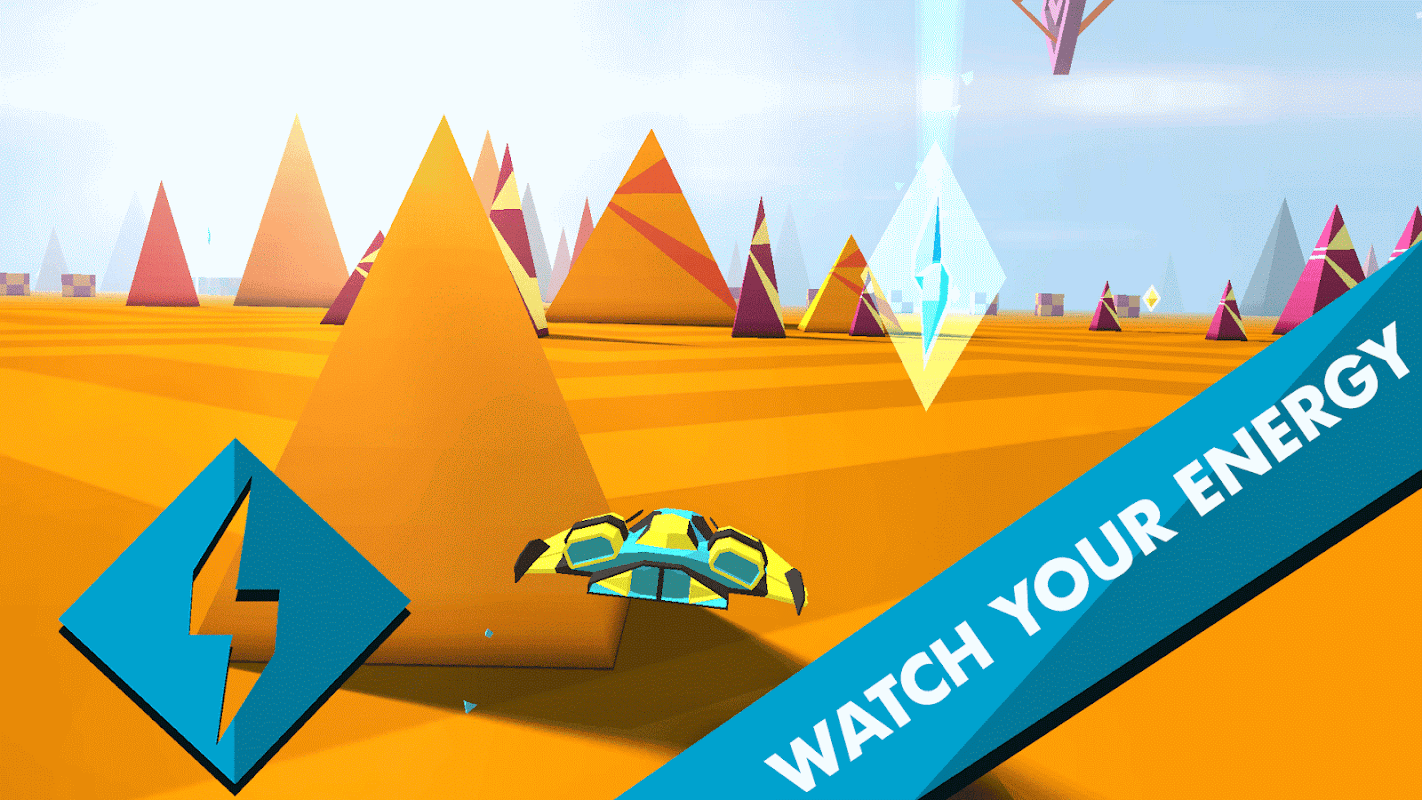 Race in the crazy world of geometry shapes. Aim towards the setting sun and watch out for obstacles that will try to push you off the track.