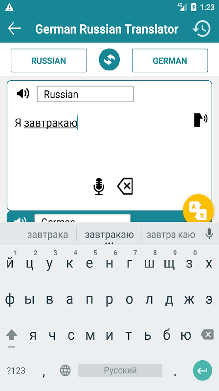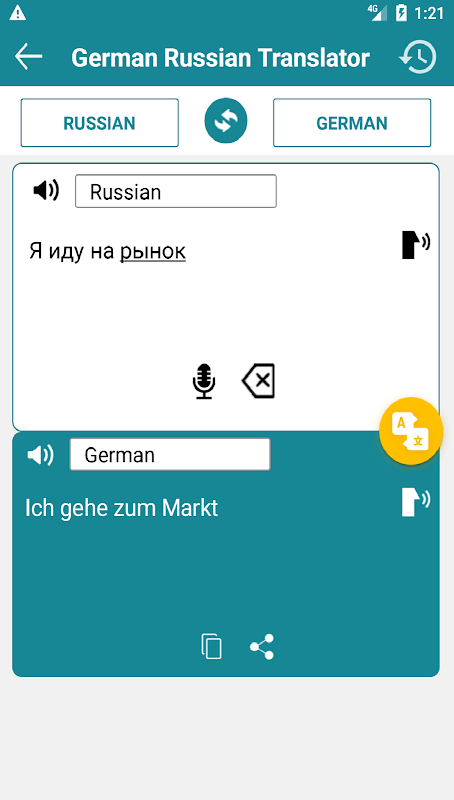 * This translation app is absolutely free. You can translate words and sentences in both ways, from German to Russian and from Russian to German. This useful translation application offers fast and accurate translations.