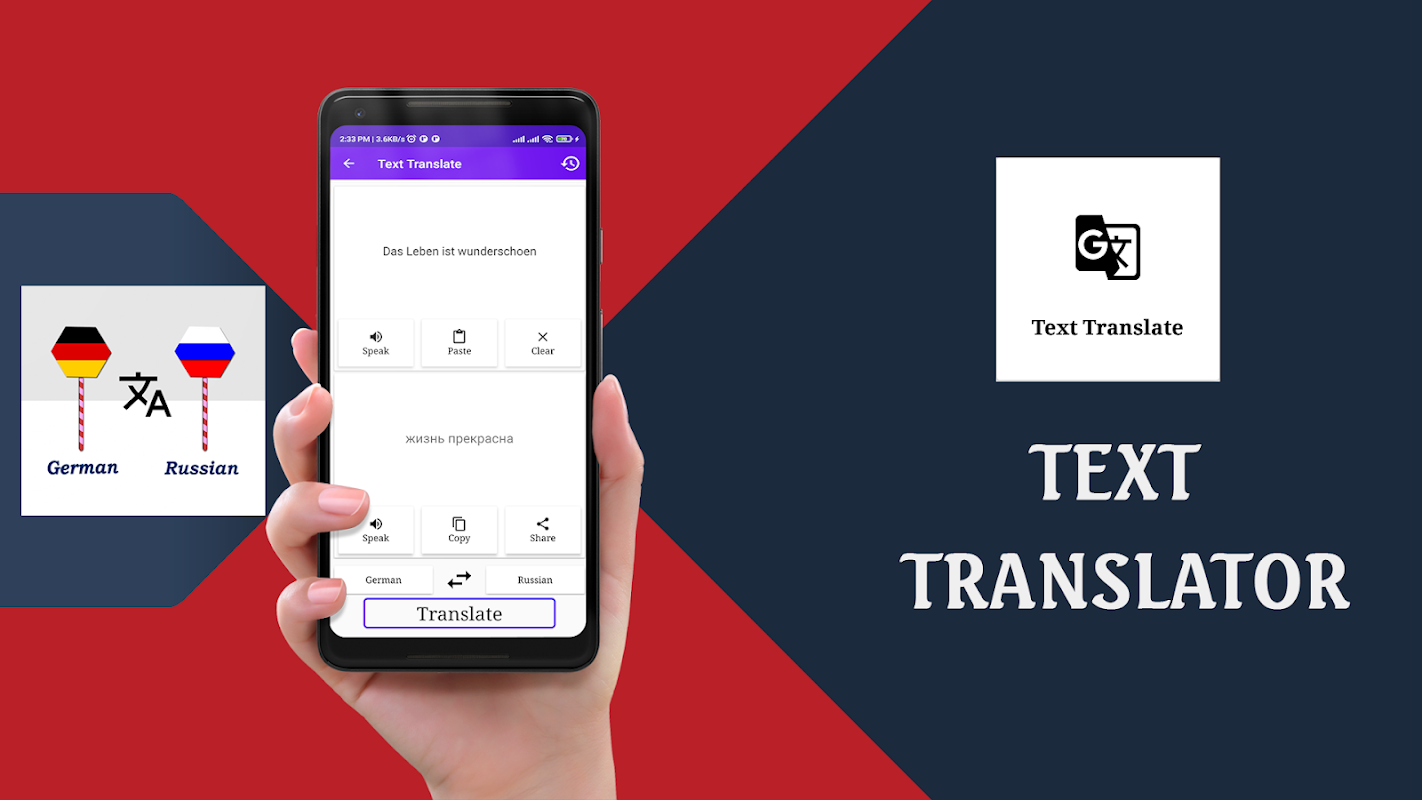 German to Russian Translator to translate text translate,word translate,paragraph translate and also full Sentences translate.this application also used for German to Russian translator and Russian to German translate also for word,text and full sentences.