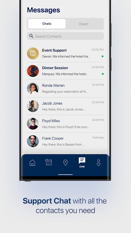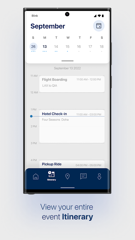 Itinerary: check the entire trip schedule, all the event days with every activity. Details about each session, cultural etiquette, who’s attending and the location it will be held at, with the ability to see directions to said location using your favorite map app.