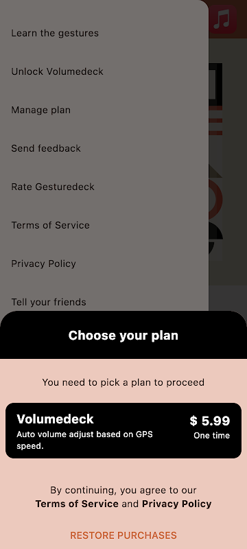 Volumedeck is a neat way to automatically adjust your volume based on how fast you go. No need to keep adjusting your volume when the noise rises. Volumedeck is a paid feature or included for free with the lifetime license. You can enable Volumedeck from the app menu!