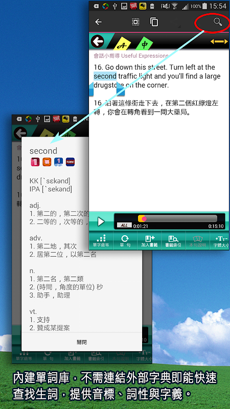 7. Bookmark function: Bookmark the content that needs to be reviewed or used, and play it repeatedly for practice.