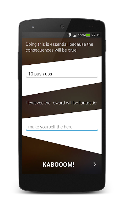 Using the motivation you have before you start working this tool let's you set your goals and time in which you want to be done. No more distraction, just one mission. By dividing your goal into subgoals, setting consequences for your success or failure and a smart break management system you have no more excuses left not to work on it.