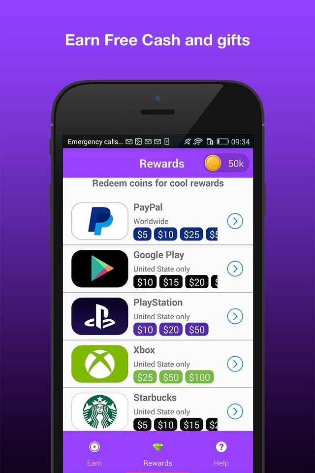 Rewards include: Paypal cash, Google play gift cards, Starbucks gift cards, PS4 Gift cards and much more!