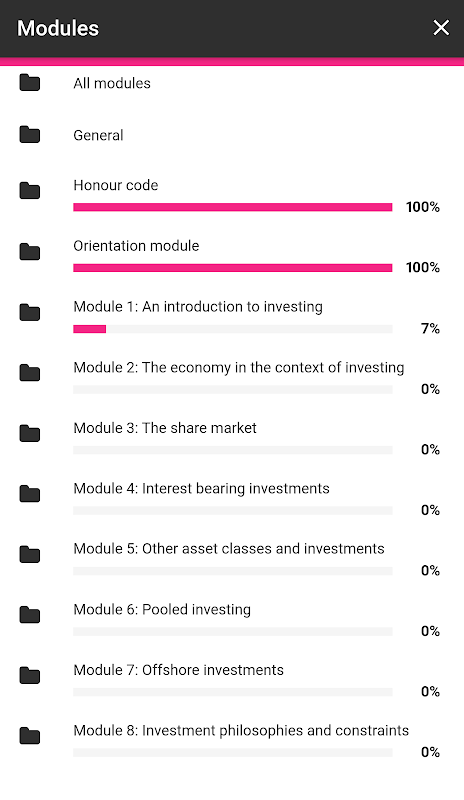 ● Track your course progress: Check completion progress in courses for your modules and view your grades for each graded activity.