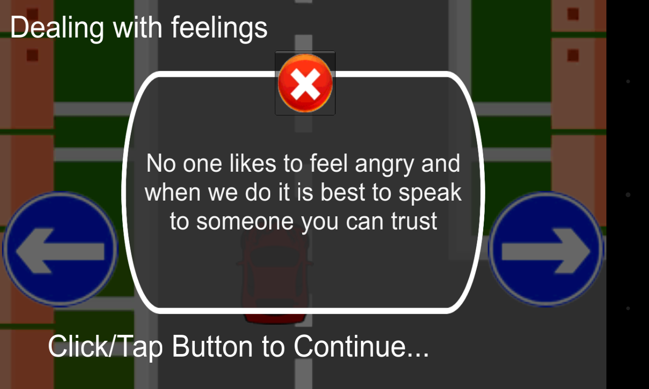 The player must steer the car avoiding the potholes, and collecting the repairs (tools icon). Each tool collected will trigger a multiple choice question. Answering the question correctly increases the score multiplier. Answering wrongly decreases the multiplier back to one. Crashing also results in a decrease in the multiplier. The aim is to reach the end with the highest score possible! The game is available in English, Italian and Greek.