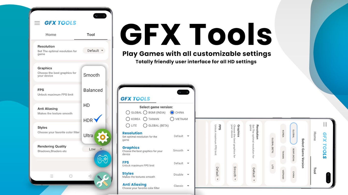 GFX tools for HD graphics, game booster, Gax games background and GTX assists.