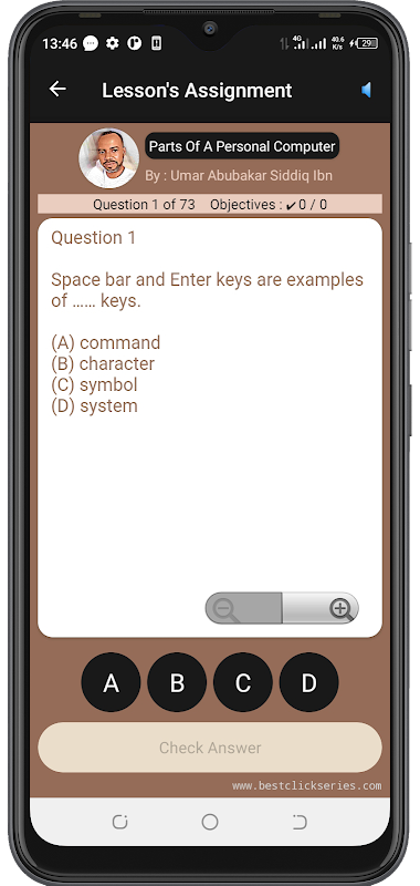 Objectives, theory and true/false questions assignments are attached to each lesson with an interactive audio examiner to help read lessons and assignments to students.