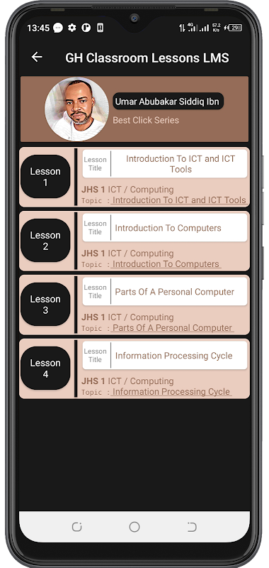 Teachers or instructors Create virtual classrooms in GH classroom lessons app to deploy lessons with assignment in text, pictures, and videos to their students.