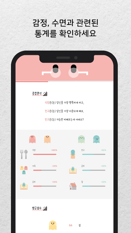 기록한 감정과 수면시간에 대한 통계를 확인해보세요. 내 감정에 영향을 주는 요인들을 파악해보세요.