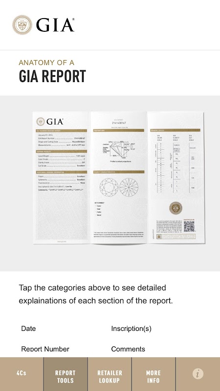 - An interactive GIA Grading Report Anatomy – to help consumers understand the different elements of a GIA report