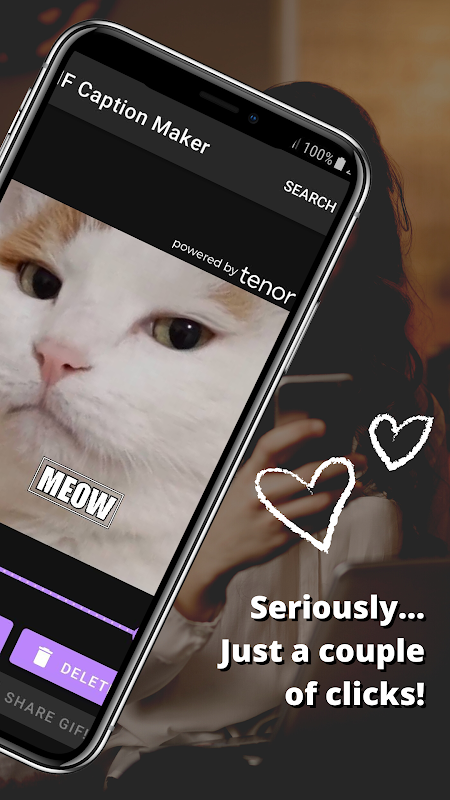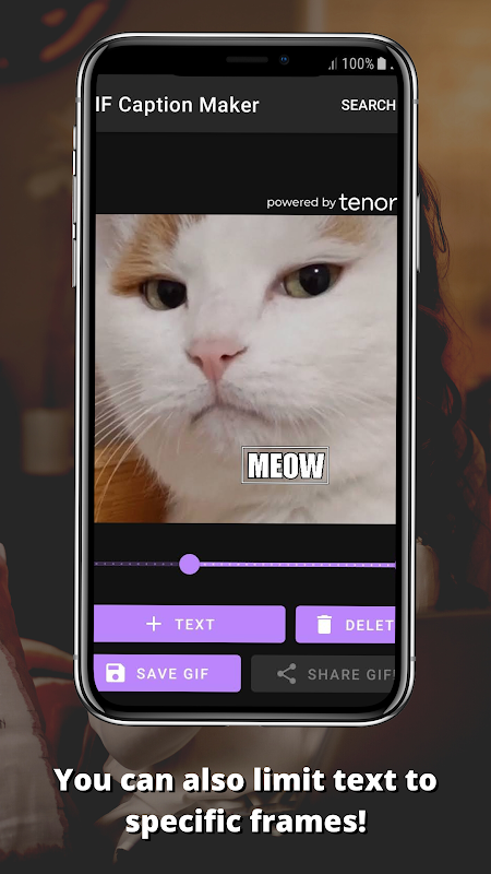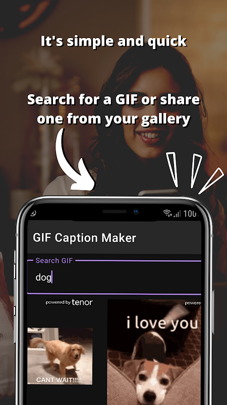 You can directly share a GIF with the app or you can use the built-in search engine to search hundreds of GIFs on Giphy and Tenor!